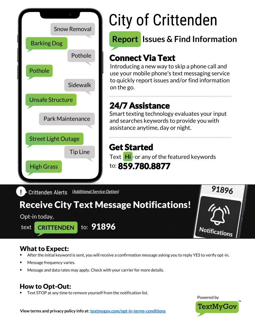 learn more Information Click Here to Download 859-428-2597 859-428-2419 [email protected] 117 S Main St.Crittenden KY 41030 Mail: PO Box 207Crittenden KY 41030